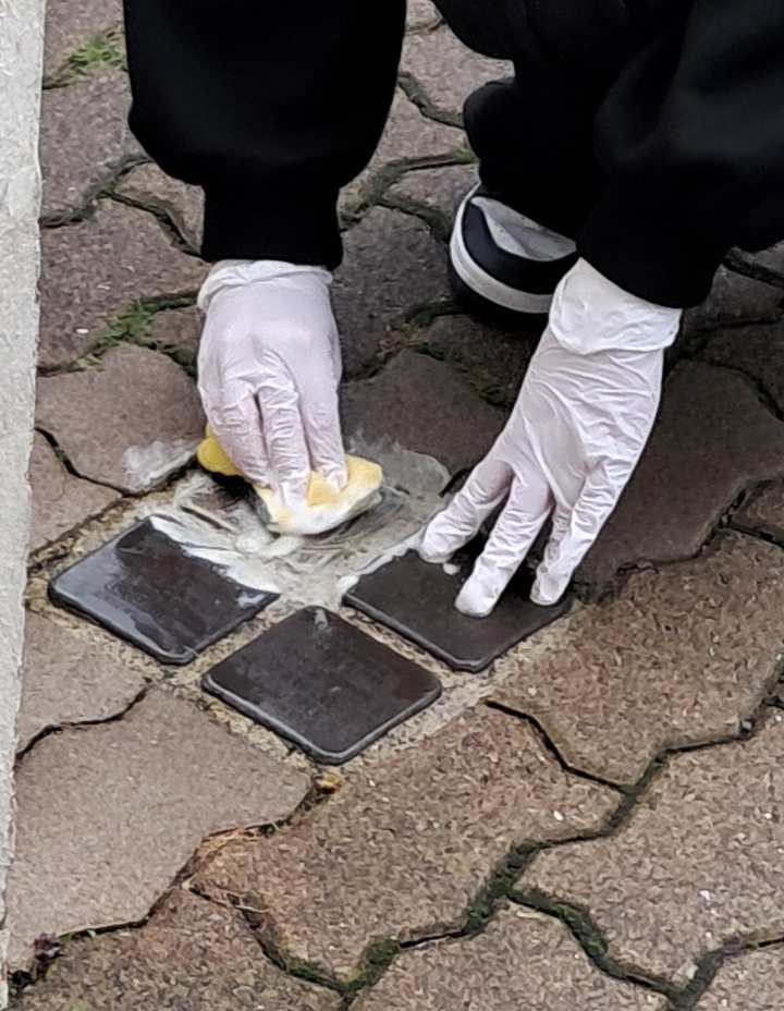 Seit diesem Schuljahr wird die Fahrt für den Doppeljahrgang 9 und 10 angeboten. Die einwöchige Abwesenheit der 10. Klassen während deren Klassenfahrt nutzten die Neuntklässler*innen und die betreuenden Lehrkräfte Regina Bangert, Christian Iburg und Dennis Janssen, um in der Innenstadt verlegte Stolpersteine, die an die Schicksale dort wohnender Juden erinnern, zu säubern und zu pflegen. Die HDR ist hierbei für die Stolpersteine der Familie Buchholz in der Sachsenstraße und denjenigen für Paula Paradies in der Krummen Straße zuständig. Alle Schüler*innen nahmen ihre Aufgabe sehr ernst und nutzten die Zeit und Gelegenheit einerseits zum Austausch ihrer Gedanken, andererseits aber auch zum stillen Gedenken an die vertriebenen Menschen.