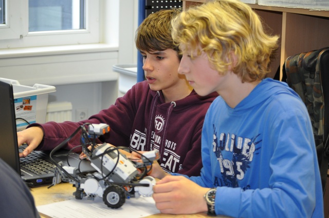 Unter fachkundiger Anleitung von Herrn Mahlmann vom zdi wurden zunächst Lego-Roboter zusammengebaut und anschließend die ersten Programmbefehle eingeübt.