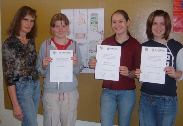 Die Klasse 8b hat unter der Leitung von Frau Paust (links im Bild) an dem Schülerwettbewerb 2006