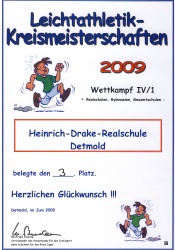 Die Lippischen Kreismeisterschaften fanden im Juni 2009 auf dem Werre-Sportplatz statt. Die 1. Mannschaft der Heinrich-Drake-Realschule (Reshko, Kerger, Maletzki, Veith, Gießelmann, Jahn, Multhaupt, Pausar, Umbach, Wenzel und die Kofski-Schwestern) konnte sich um drei Ränge gegenüber dem Vorjahr verbessern und erreichte Platz 3 hinter dem Grabbe-Gymnasium, Detmold und dem Engelbert-Kämpfer-Gymnasium, Lemgo.