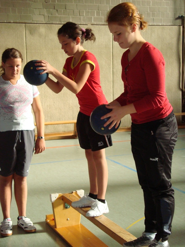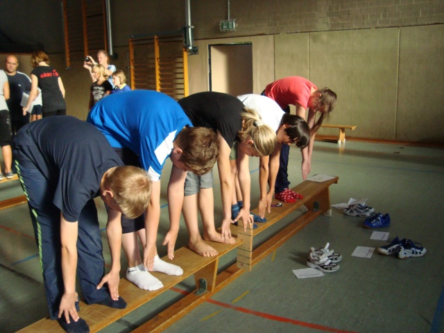 Auch in diesem Jahr fand für die jüngeren Jahrgänge (5-7) der Heinrich-Drake-Realschule der Bewegungs-check-up statt. Basis dieses Check-ups ist der erweiterte Münchner Fitnesstest nach Rusch/Irrgang, der die sportliche Leistungsfähigkeit von Schülern mit Hilfe von sieben Übungen erfasst: Ballprellen, Rumpf-Hüftbeugen, Zielwerfen, Standhochspringen, Halten im Hang, Stufensteigen und ein Sechs-Minuten-Lauf.