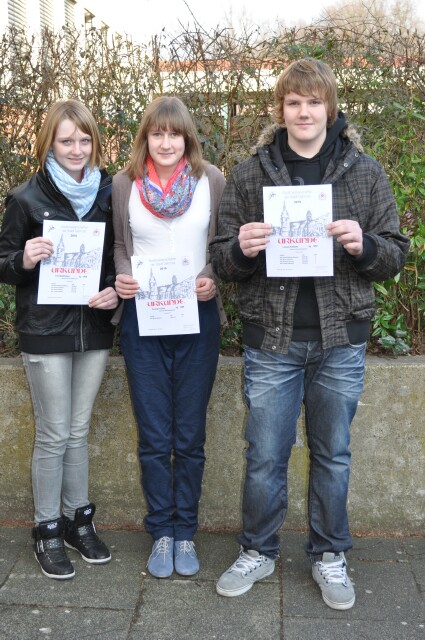 v.l. Lea Spellmeier (7d), Svenja Tente (8b), Lucas Küllmer (8a)