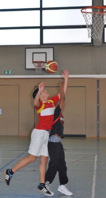 so Sportlehrer Olaf Fritsch, und seine Prophezeiung sollte sich bewahrheiten. Die fünften und sechsten Klassen gaben alles, verausgabten sich, gerieten mächtig ins Schwitzen, waren heiser vom Anfeuern...und kürten zum Ausklang des erfolgreichen Sportjahres die verdienten Sieger der Unterstufen-Basketballturniere.