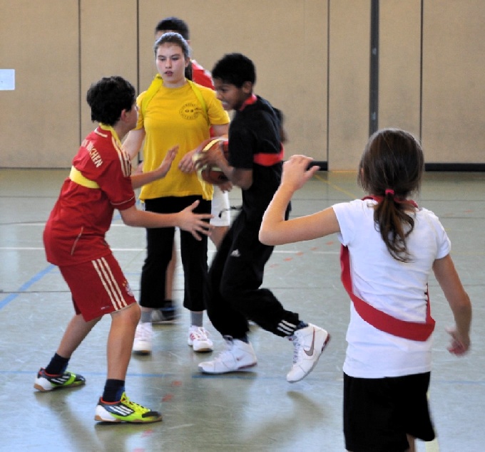 Dass sie auch sportlich etwas drauf haben, bewiesen zunächst einmal die Kreativ- und Musikklassen. Die Klasse 5b hatte nach der Vorrunde bereits 96 Punkte eingespielt. In Finale ging es dann gegen die 6b. Zum Schluss wurde es ganz knapp: die 5b gewann das Finale schließlich mit 22 zu 18 Punkten. Das Spiel um Platz 3 konnte die Klasse 6a mit 26 zu 24 gegen die 5a für sich entscheiden.
