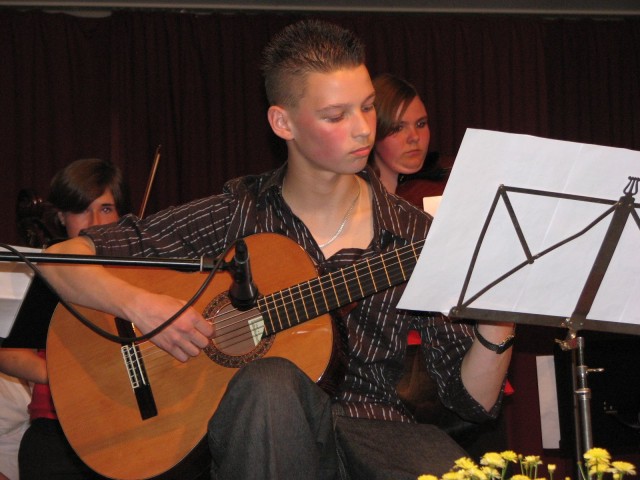 Thomas Chyba (9c) zupft eine spanische Romanze auf der Gitarre.