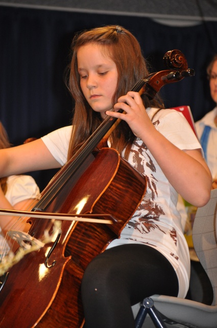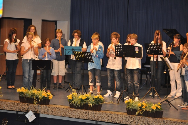 Den Reigen eröffnete die Musikklasse 5b, die nach einem knappen Jahr Unterricht auf Streichinstrumenten ihr bereits beeindruckendes Können mit vier kurzen Stücken unter Beweis stellte. Auch die Schülerinnen und Schüler der Klasse, die nicht auf Streichinstrumenten unterrichtet werden, bereicherten die Vorträge durch ihre Flötenkenntnisse.