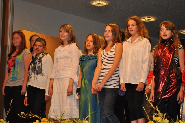 Und dann betraten viele junge Damen die Bühne: ein Chor, bestehend aus Schülerinnen der 10. Klassen, sang zur Begleitung des Streicherensembles "You raise me up" von Westlife und nutzten damit die Gelegenheit sich musikalisch von ihrer Schule zu verabschieden.