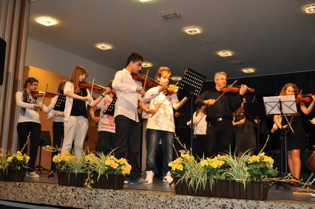 Zum Abschluss folgte der Höhepunkt des Sommerkonzerts: der Auftritt des Streicherensembles unter der Leitung von Werner Jost. Das Ensemble begann zunächst mit "Don't you take two" aus der Feder von Werner Jost selbst. Wie immer hatte man das Gefühl, dass die Schülerinnen und Schüler die eigens für sie komponierten Stücke mit besonders viel Begeisterung und Herzblut interpretieren. Ein anerkennendes Raunen und Vorabbeifall gab es vom Publikum, als das Ensemble "La Cumparsita" anstimmte.