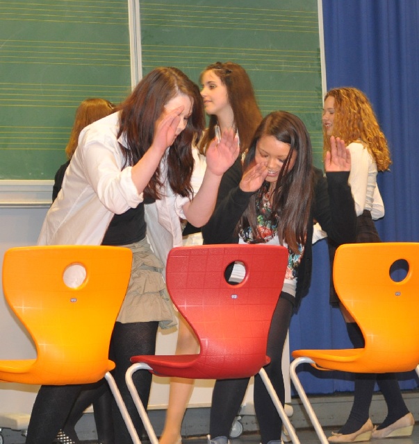 Evelin Rychlik hatte noch einmal ihre STOMP-Mädels der Klasse 8b auf die Bühne geholt. Den Mädchen gelang es abermals, ihr Rhythmusgefühl und ihr schauspielerisches Talent in einer gelungenen Vorstellung zu vereinen. Tosender Applaus war der Dank für die fantasievolle Choreographie.