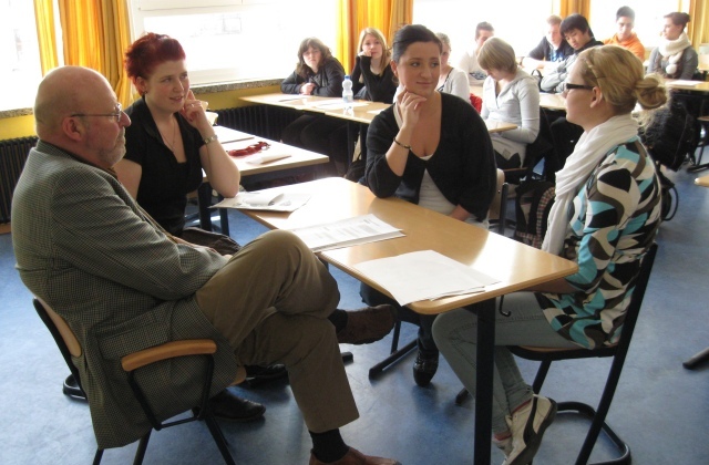 Schüler bereiten sich mit Muttersprachler Ian Douglas Powell auf Sprachzertifikat vor