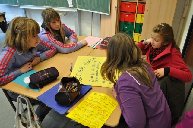 Die Teams der 5b einigen sich auf "7 goldene Regeln zur Gruppenarbeit".