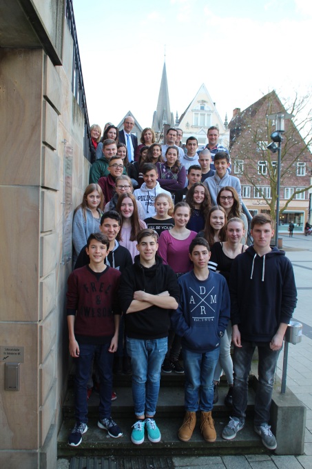 Auch die Bürgermeister der beiden Städte empfangen die Gruppe der an einander interessierten Jugendlichen im jeweiligen Rathaus und freuen sich über den regen Austausch.