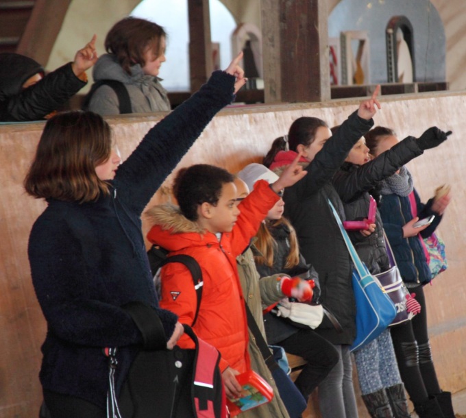 Anschließend legte Anja Graeve-Kamp den Sattel auf, so dass sich die Klassen in der Reithalle die Gangarten des Pferdes in natura ansehen konnten. Im Galopp hatten die Schülerinnen und Schüler nur einen Wunsch: "Geht das auch noch schneller?" Zwischendurch blieb immer wieder Zeit für Fragen. So wurde auch über einen weit verbreiteten Irrtum aufgeklärt: gelenkt wird ein Pferd nicht mit den Zügeln, sondern mit dem Gesäß und den Beinen.