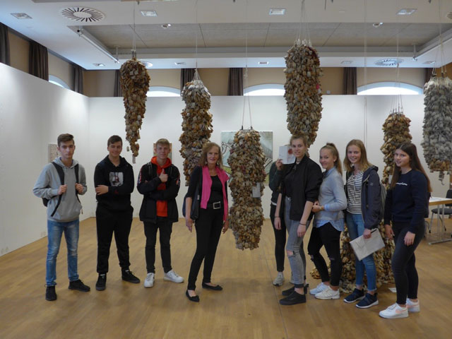 Am 14. September 2018 besuchte der Textilkurs Kl. 10 mit ihrer Lehrerin Frau Paust die o.g. Ausstellung in der Stadthalle Detmold. Bei der Betrachtung und Besprechung von 10 Textilkünstlern/innen und ihren Werken, holten sich die Schüler/innen Ideen und Anregungen für Ihre eigenen Webarbeiten, die sie zurzeit im Textilgestaltungsunterricht anfertigen.