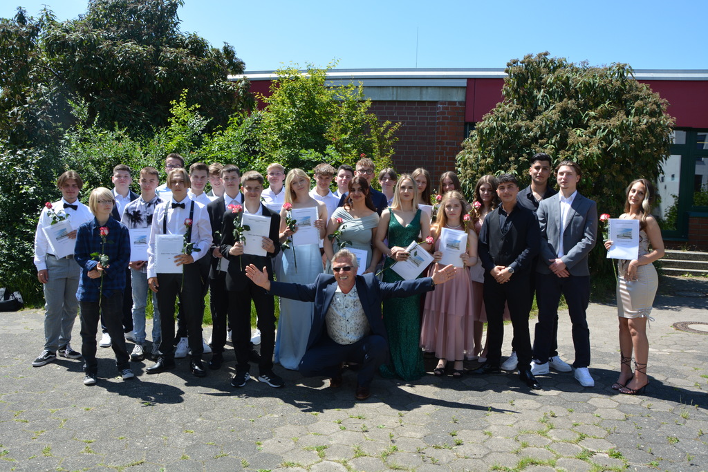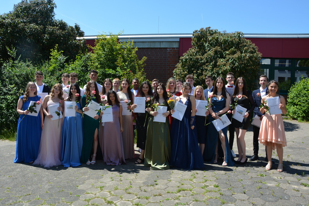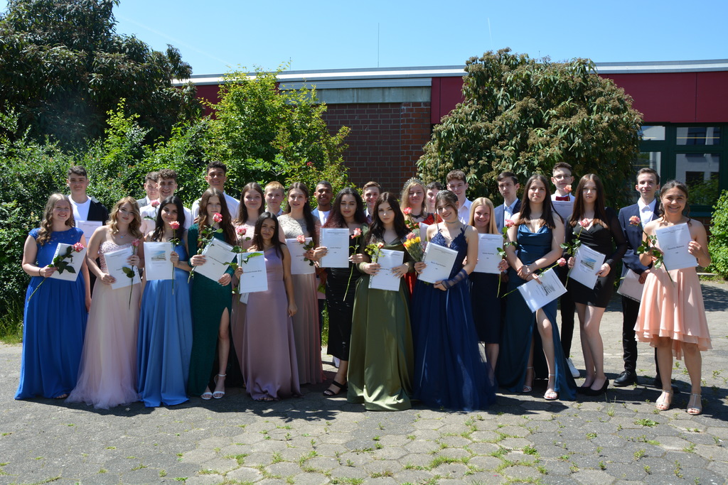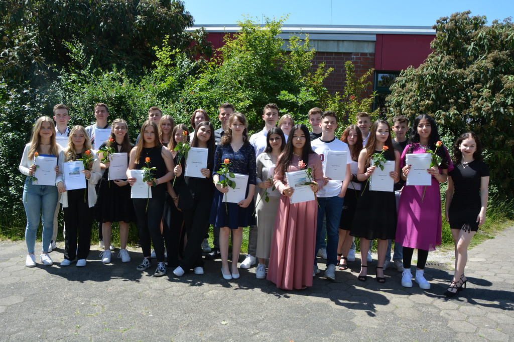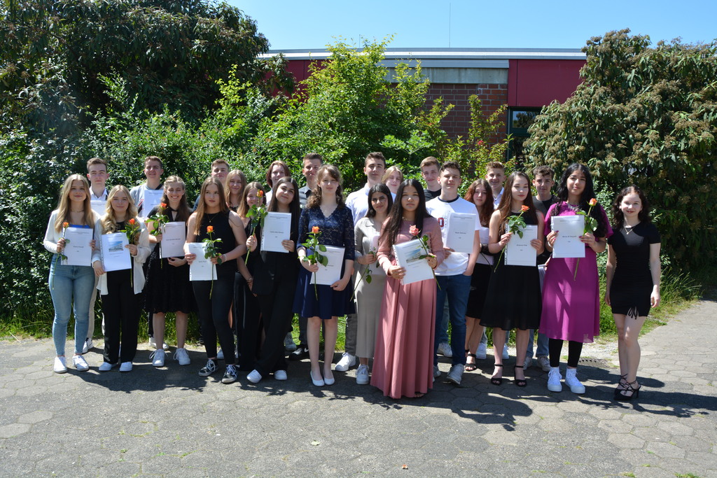 Zum Abschluss ehrte die Vorsitzende des Fördervereins Regina Bangert folgende neun Schülerinnen und Schüler für besondere schulische Leistungen und besonderes soziales Engagement: Maurice Effner, Jan Luis Schauder, Medine Sit (Klasse 10a), Louis Dikong, Alicia Schwipps (Klasse 10b), Diana Pries, Paula Rosemeier, (Klasse 10c), Lukas Hengstler, Pia Schulze (Klasse 10d). Anschließend lud der Förderverein bei strahlendem Wetter zu einem Sektempfang auf dem Schulhof ein.