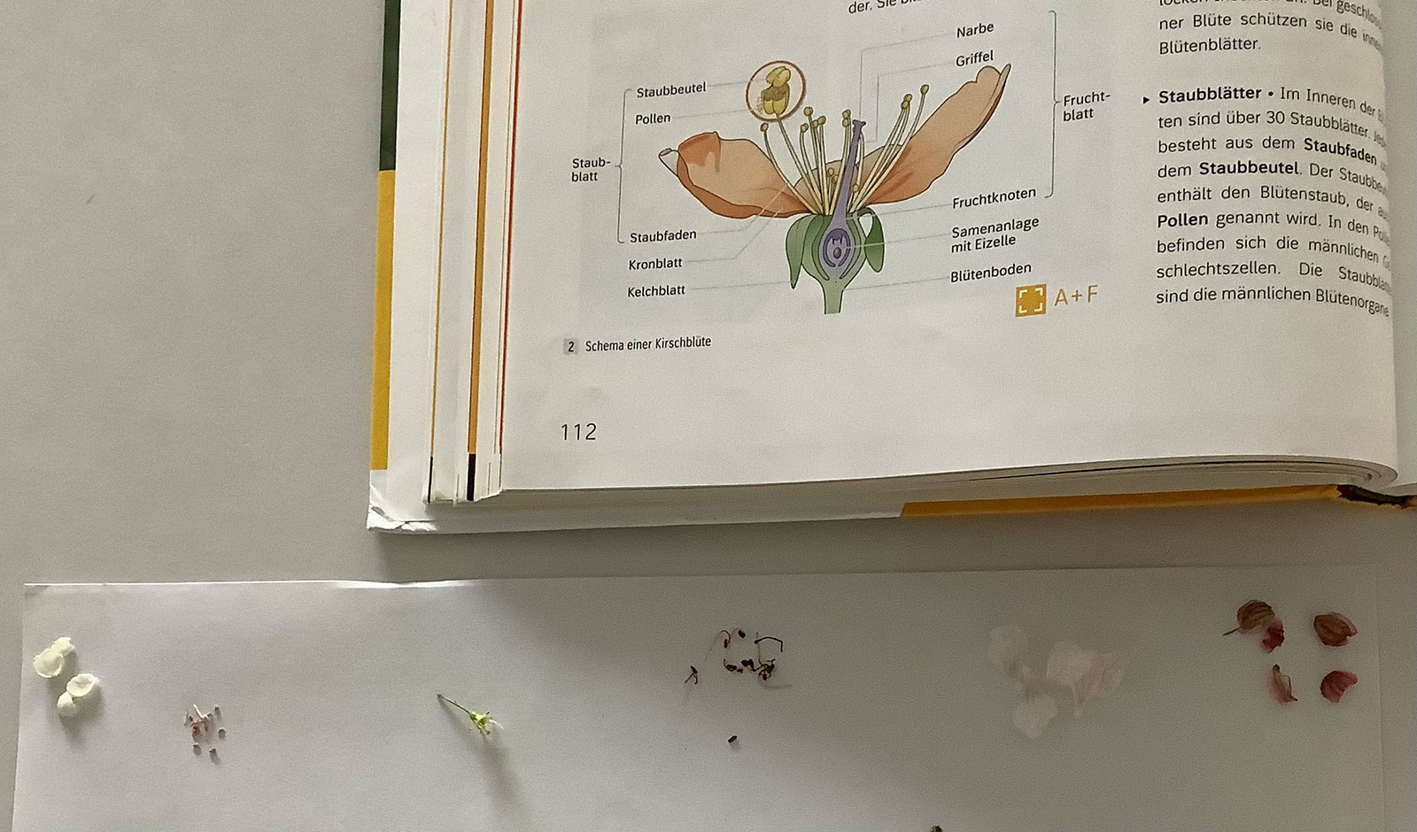 brachte Biolehrerin Anja Graeve-Kamp verschiedene Blüten wie Storchschnabel, Kirsche und