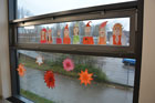 Wenn man gerade das Haupttreppenhaus der HDR nutzt, blickt man in eine Menge künstlerisch gestaltete Weihnachtsmänner, -frauen und -elfen. Die wunderschöne Arbeit aus Wasserfarben entstand im Kunstunterricht der 6. Klassen bei Lehrerin Marie-Luise Paust. Zusammen mit den Faltsternen entstand so eine stimmungsvolle Dekoration für das Treppenhaus.